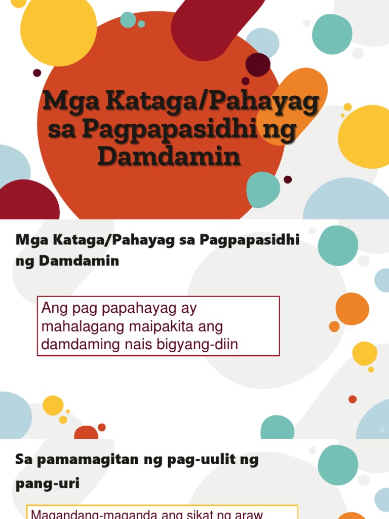 Pinasidhing anyo ng hanga. Marami _____ ng magagandang dahilan upang ating mahalin ang sariling bayan. Paggamit ng mga Panlapi Napakaganda ng wikang Filipino Pagkasaya-saya ng mga dayuhan na bumibisita sa ating bansa Walang kasingsarap ang marinig ang mga Pilipino na gamitin ang Wikang Filipino 8. Pagpapasidhi ng Anyo ng Pandiwa Panlaping magpaka- Mapagkasipag Magpakahusay Magpakasanay 9.