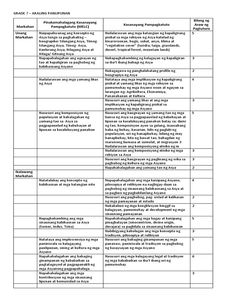 Ap Grade 7 Dlp 1 Docx Detailed Lesson Plan Dlp Aral Pan 7 Asya July 1 10 2019 Yugto Ng Pagkatuto Phase Of Learning I Layunin A Course Hero